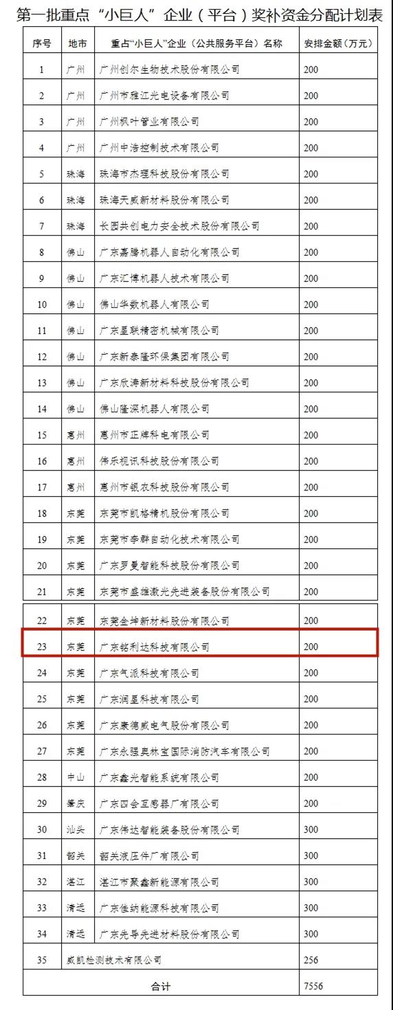近日,广东省工业和信息化厅发布了《关于2021年中央财政支持第一批重点“小巨人”企业奖补资金分配计划的公示》,全省共有35家重点企业(平台)将分享7556万元奖金,每个企业获得的奖补资金从256万元-300万元不等。东莞共有10家企业将获得200万元的奖励,其中清溪就有一家——广东亚星游戏官网科技有限公司。