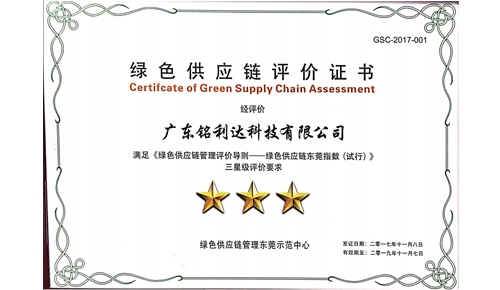 绿色供应链评价证书